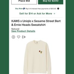 KAWS x Uniqlo x Sesame Street Bert & Ernie Heads Sweatshirt$120Alexandria, VA