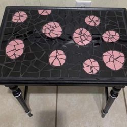 Handmade Mosaic Tile Side Table Black Pink Circles Accent Plant Stand 21” Turned$75Gaithersburg, MD