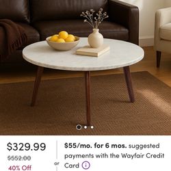 Round coffee Table Italian Carrara With Wooden Legs $250Burke, VA