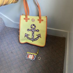 SPARTINA 449 Anchor LARGE Retired Tote Handbag Purse Shoulder Bag with Matching Wallet Great pre-owned condition. Bag is Lime Green fabric with Ora$20Arlington, VA