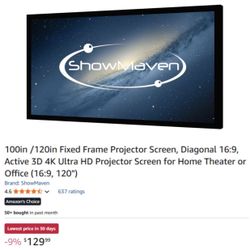 100in /120in Fixed Frame Projector Screen, Diagonal 16:9, Active 3D 4K Ultra HD Projector Screen for Home Theater or Office$50Washington, DC