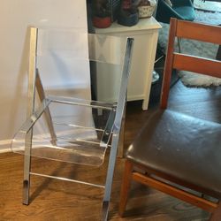 Two Very Good Folding Chairs. An Antique Wooden One With Leather Seat. A Strong Glass One From Ikea (with A Little Scratch In The Back) $30 For Both$30Glenarden, MD