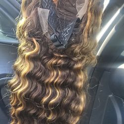 22” Ombre Highlight Deep Wave 180% 13x4 Lace Front Human Hair pre-plucked HD transparent Lace Wig$185Rockville, MD