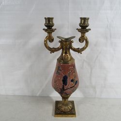 Candelabra Vase Porcelain/Ceramic & Brass Hand Painted Italian Vietata