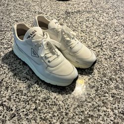 PRADA Milano White Lace Up Low Top Athletic Sneaker Solid Pattern Men$800Uppr Marlboro, MD