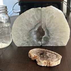 Matching Natural Crystal Geode Bookends & Petrified Wood Slab$30Herndon, VA