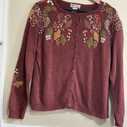 Heirloom Collectibles Embroidered Autumn Leaf Cardigan Maroon XL NWOT Boho Vtg$55Germantown, MD