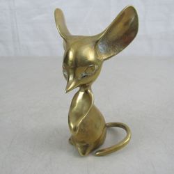 Mouse Large Ears Solid Brass Vintage 1950's Sculpture Paperweight