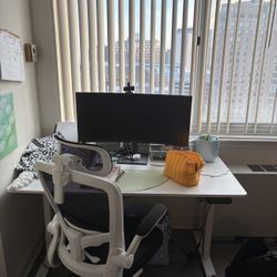 Desk, Lenovo monitor, omen curve monitor, canon printer and desk chair set up $600Arlington, VA