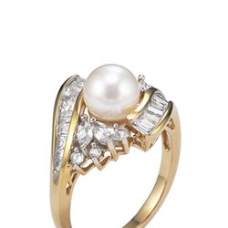 14 gold over silver cultured freshwater pearl and white sapphire ring size 6 new$110Manassas, VA