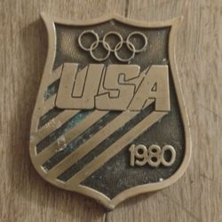USA Moscow 1980 XXII Olympiad Contributor Gold Badge Shield Olympic Souvenir$10Lewiston, ME
