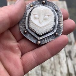 🦉 Hand-Carved Owl Pendant | Sterling Silver with Gold Accents | One of a Kind 🦉 $400Phippsburg, ME