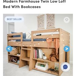 Modern Farmhouse Low Loft Bed with Bookcases$200Portage, MI