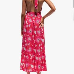 Floral Zesica halter dress, size L, color pink ans red$21Battle Creek, MI