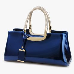 Blue Glossy Faux Patent Leather Structured Shoulder Handbag Women Evening Party Satchel$22Dutton, MI