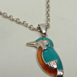 Turquoise Color Enamel Amber Kingfisher Bird Pendant Chain Necklace Silver Tone New$9Rockford, MI