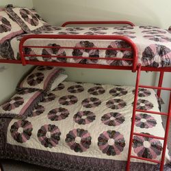 Red Metal Bunk Bed – Full/Double Bottom & Twin & Bedding!$125Gladwin, MI