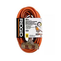 RIDGID Extension Cord 50 ft. 12/3 Heavy Duty Indoor/Outdoor with Tritap Lighted End, Orange/Grey$55Garden City, MI
