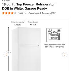 Brand New Vissani Garage Ready Top Freezer Fridges$500Warren, MI
