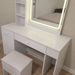 White Vanity Desk with LED Mirror & Stool – Like New - Free Delivery$150Dearborn, MI