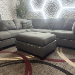 FREE DELIVERY Studded Grey, L-Shaped Sectional With Chase And Ottoman $625Romulus, MI