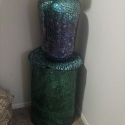 A very beautiful green vase containing glass shells with a small table55$$55Dearborn, MI