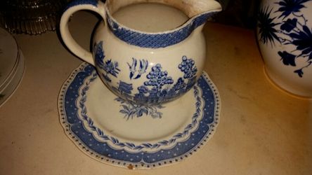 Antique blue and white china pitcher and plate$25Grosse Pointe Park, MI