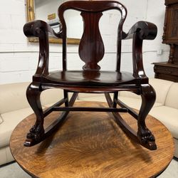 Antique American Mahogany Ball & Claw Colonial Revival / Chippendale Style Rocking Chair / Accent Chair 🚚 Luxury Estate Furniture $350Farmington Hills, MI