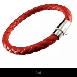 MEN RED SILVER BRAIDED LEATHER WRAP BRACELET TRENDY STYLE ! GIFT 🎁$12Macomb, MI