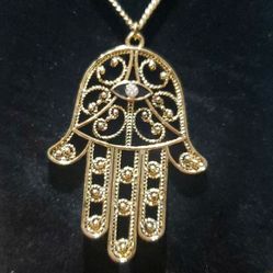 Hamsa Gold Tone Necklace costume Jewelry 36" chain $30Detroit, MI