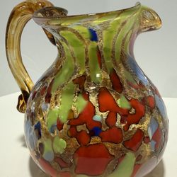 Vintage Murano Style Hand-Blown Art Glass Pitcher with Gold Aventurine – 5” Tall$95Northville, MI