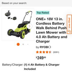 RYOBI cordless Electric Lawnmower With Battery & Charger $340Dearborn, MI