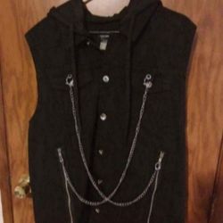 New With Tags Hot Topic Collision Black Denim Vest Hoodie With Chains Size 2XL$30Washington, MI