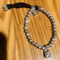 M KORS logo silver bead round crystal padlock charm leather stretch bracelet $27Macomb, MI