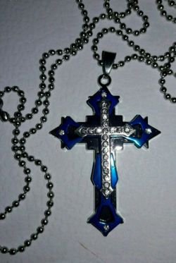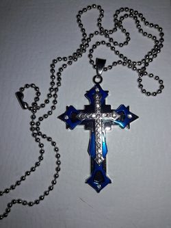 SILVER AND BLUE CHAIN CROSS NECKLACE$8Livonia, MI