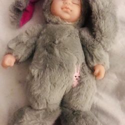 GRAY pink BUNNY Rabbit BABY infant DOLL GIFT π $15Macomb, MI