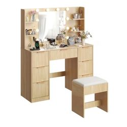 Vanity Desk with Mirror and Lights, Makeup Table Dressing Table, Makeup Vanity Dressing Tables, Makeup Vanity with Drawers. 5-Drawer, 2-Shelf (Oak-Col$175Sterling Heights, MI