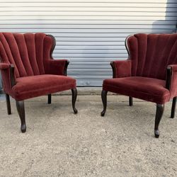 Set of 2 Custom Traditional Deep Red Burgundy Velvet Accent Chairs - Art Deco Vintage & Antique 🚚 Luxury Estate Sale Furniture & Home Decor$500Farmington, MI