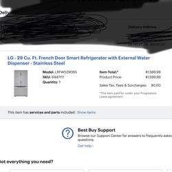 LG 29 CU. FT. French Door Smart Refrigerator with External Water Depenser$950Detroit, MI
