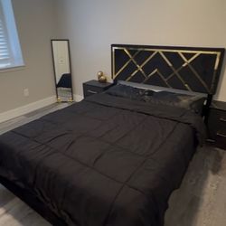 Black and Gold Full Size Bed and Nightands$350Sterling Heights, MI