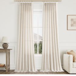 Pinch Pleated Linen Curtains 108 Inches long for Living Room 2 Panels Set Cream Beige Flax Pleat Drapes Back Tab Semi Sheer Neutral Boho Ceiling to Fl$50Novi, MI