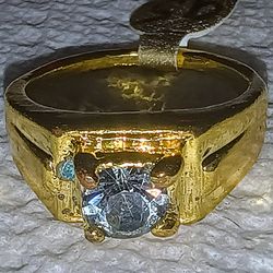 Sz11 18k Gold Plated Rectangular Black Onyx inlay CZ Stone Three Accent Stones Ring$15Garden City, MI
