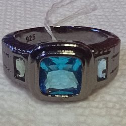Sz8 Square Ocean Blue Topaz Crystal Black Gold Ring$25Inkster, MI