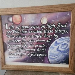 16" x 13" Picture Bible Verse Print in Solid Oak Frame; (Needs Glass)$10Garden City, MI
