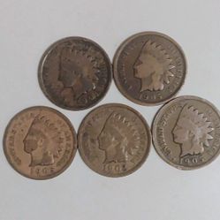 Lot Of 5 Indian Head Pennies!$20Detroit, MI