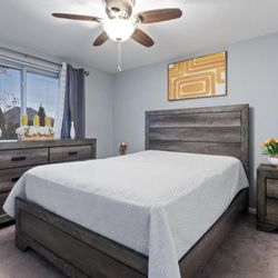 (Delivery 🚚)Grey Bedroom Set, Dresser, Bed Frame Headboard Mirror$475Detroit, MI