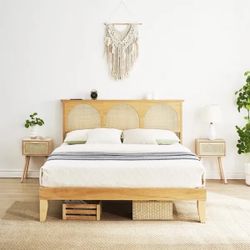 Full Bed Frame with LED Rattan Headboard$100Westland, MI