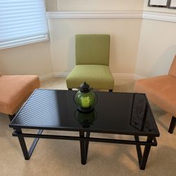 Modern Coffee Table with 3 Accent Chairs – Black Glass & Colorful Seating$350Waterford Township, MI