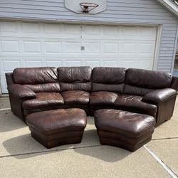 ( Free Delivery ) Two Piece Brown Leather Couch With Ottomans$500Garden City, MI