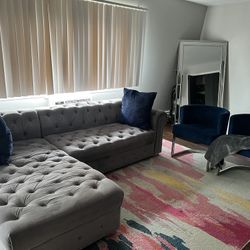 Tufted velvet grey sectional$650Commerce Charter Township, MI